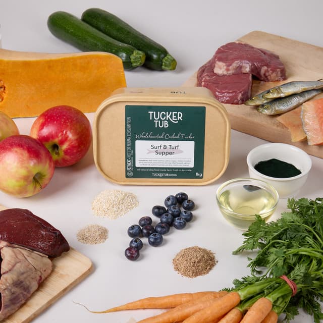 Every dog deserves more than a bowl of fresh food; they deserve complete nourishment that supports them for life. That’s why our Surf & Turf Supper is thoughtfully formulated by canine nutritionists and gently cooked by our chefs for over 12 hours at 75°C in our Australian kitchen, ensuring every nutrient stays intact.