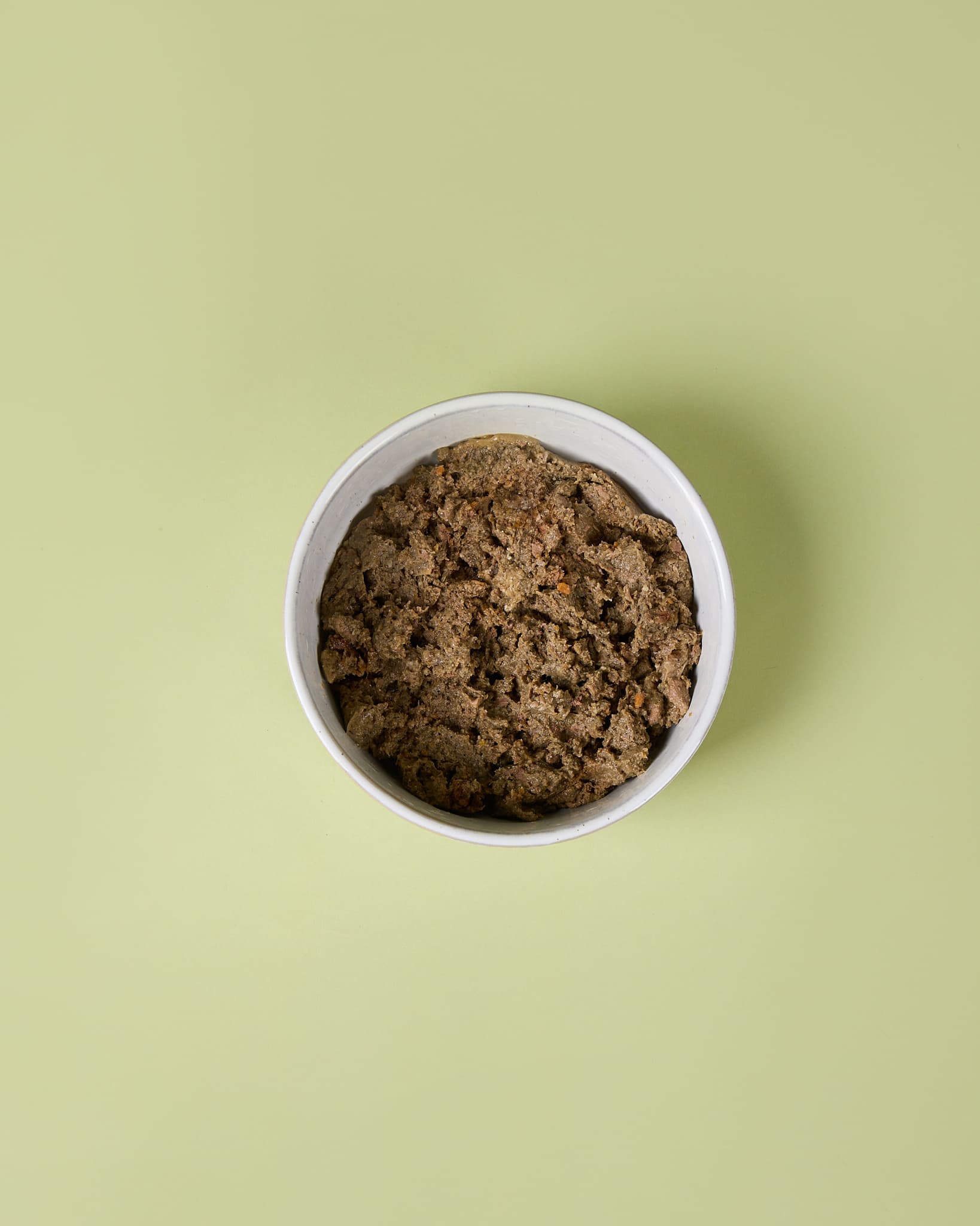 Bringing together the best of land and sea, this recipe pairs whole sardines and salmon with premium beef and organ meats, then rounds out the meal with vibrant vegetables, nourishing bone broth, natural collagen, superfoods, and carefully selected fibres. The result is a fish-forward meal designed to support sensitive stomachs, promote glossy coats, and provide complete nourishment without chicken.